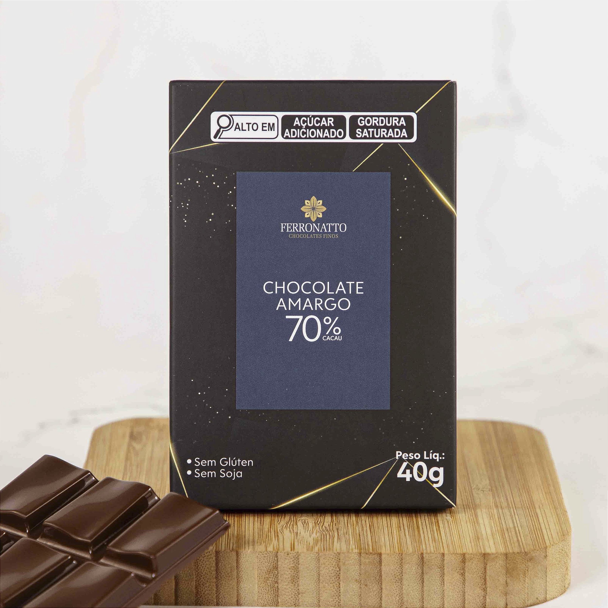 Ingredientes: Massa de cacau, açúcar, manteiga de cacau, emulsificantes lecitina de girassol e polirricinoleato de poliglicerol e aromatizante.